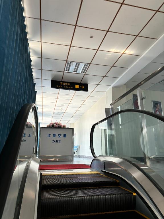 扶梯口:模拟机场上下客流动线,设置双向扶梯模型,搭配引导标识与客流提示屏,用于训练学生引导旅客分流、应对突发拥堵的能力。