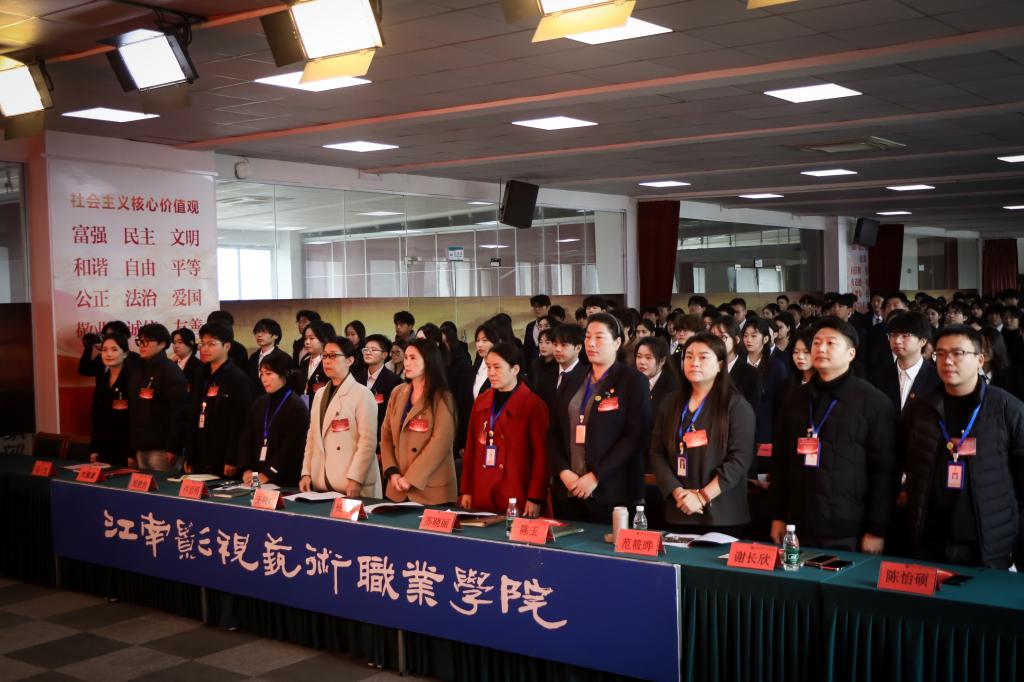 12月12日下午,江南影视艺术职业学院第十次学生代表大会在德艺楼5楼报告厅隆重召开。江南影视艺术职业学院副院长薛晗,副主任督学马元兴,学工处处长赵波,学工处副处长黄坚,团委副书记周蔚,各二级学院行政院长和团总支书记;各兄弟院校学生会干部及江影两百余名学生代表参加本次代表大会。