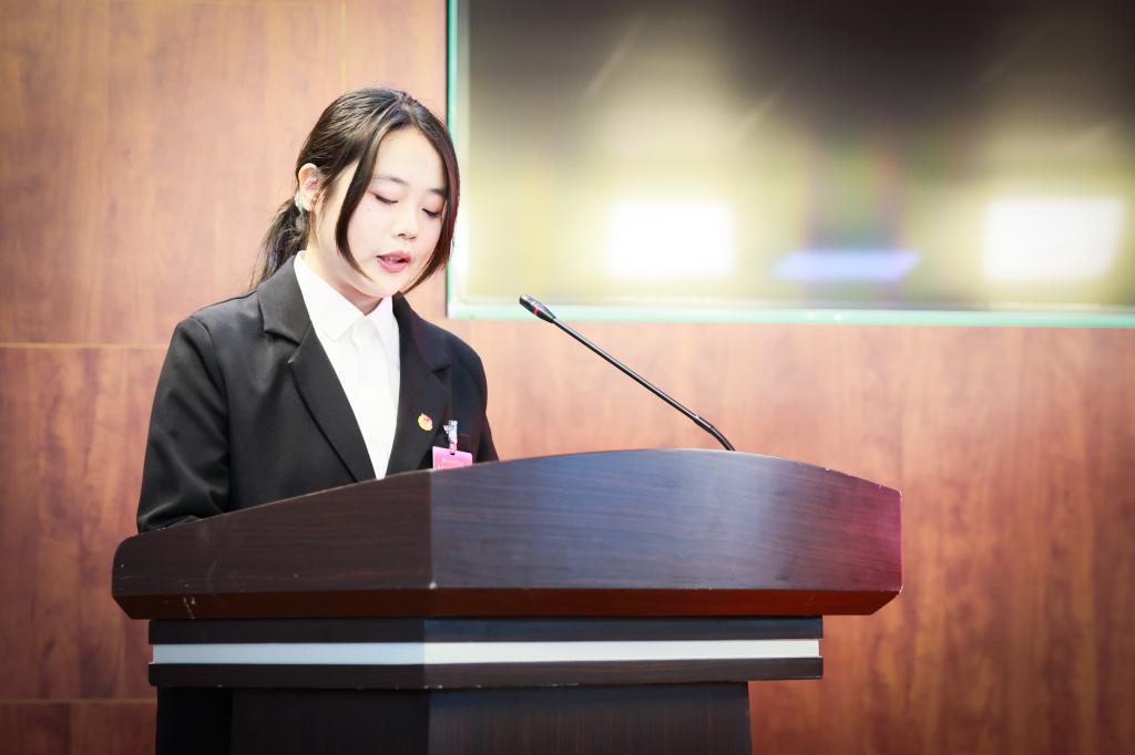 第九届校团委学生副书记马一文代表往届团队作工作报告。报告中提到,过去履职期内,团队始终以服务同学为核心,积极搭建师生沟通桥梁,高效落实各类权益相关事项,切实保障同学合理诉求,圆满完成了各项服务与建设任务。