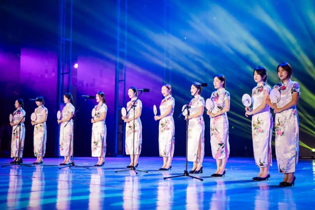 演出以“文脉流芳”“风华正茂”“未来交响”三重篇章徐徐展开,在不同艺术形式的穿插与呼应中,完成了一场跨越时空的青春叙事。阿卡贝拉《我曾遇到一束光》以纯净人声勾勒情感光谱,音舞诗韵《无锡景·家国情》则将地域文化与家国情怀融入舞影乐韵之中。组歌《青春飞扬》以歌声串联励志篇章,舞蹈《中华奇志》则用身体语言诠释青年担当。